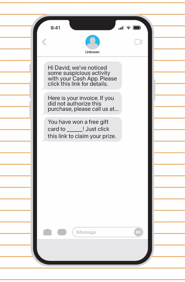 Suspicious activity: Example of a text message scam